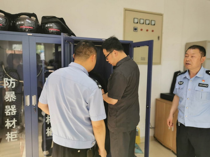 周荣强专委和法警大队长潘正福一行对院内安检处、立案大厅、监控室、警务设施、警务装备、羁押室等进行了检查巡视,认真落实警务安全工作,杜绝一切安全隐患。